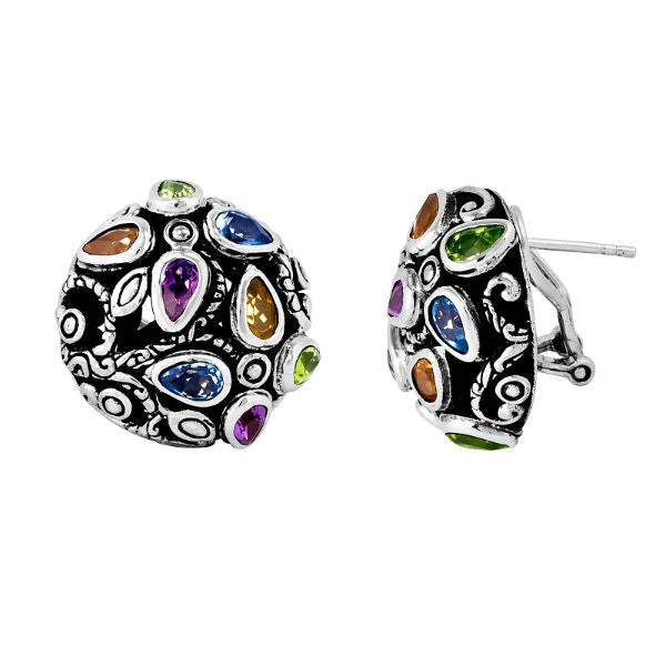AE-6034-CO1 Sterling Silver Earrings with Peridot, Citrine, Blue Quartz & Amethyst