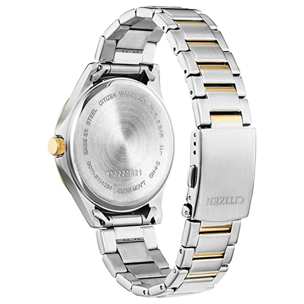 Classic two-tone men’s watch with a silver dial, day/date display, luminous hands, and reliable Quartz movement.