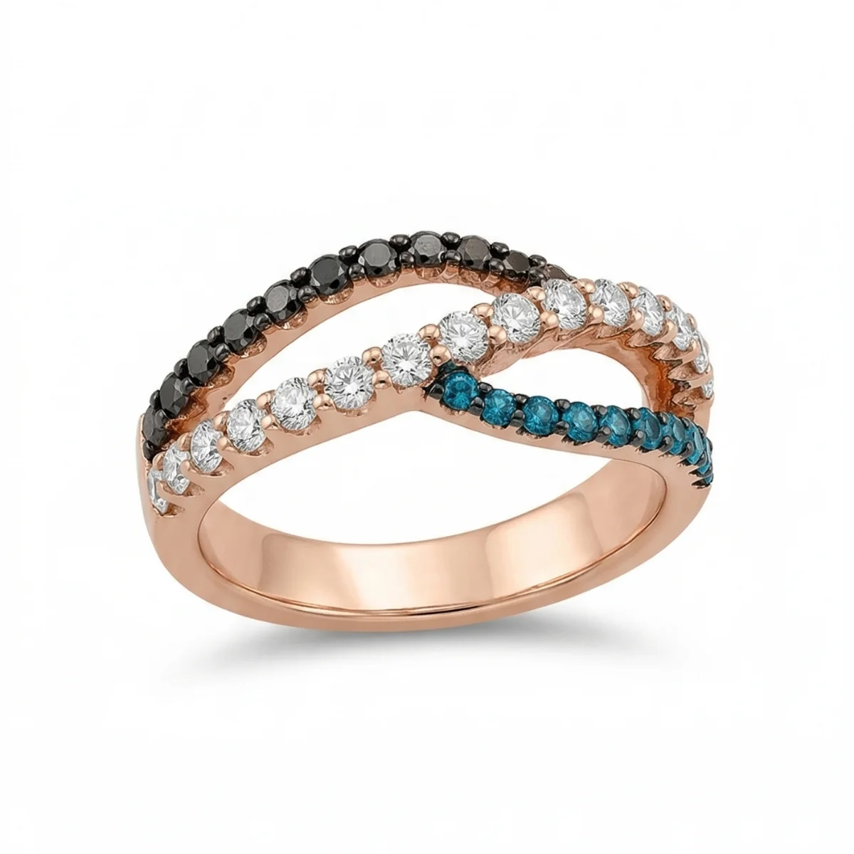 Rose 14k Color Diamonds Ring With 0.29tw Round Shape Blue Diamond Color Enhanced and 0.25tw Round Shape Brown/ Champ