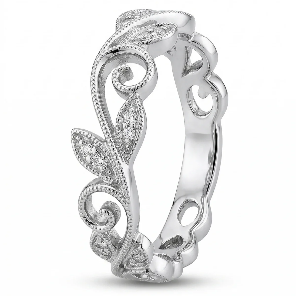 White 14k Bujukan Collection Gabriel Ring With 0.09tw Round Shape Diamond