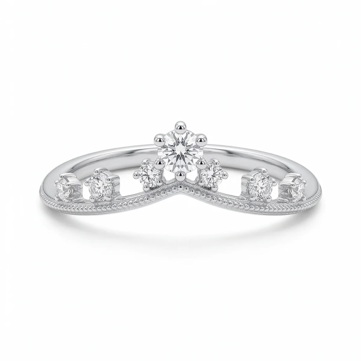 White 14k Bujukan Collection Gabriel Ring With 0.22tw Round Shape Diamond