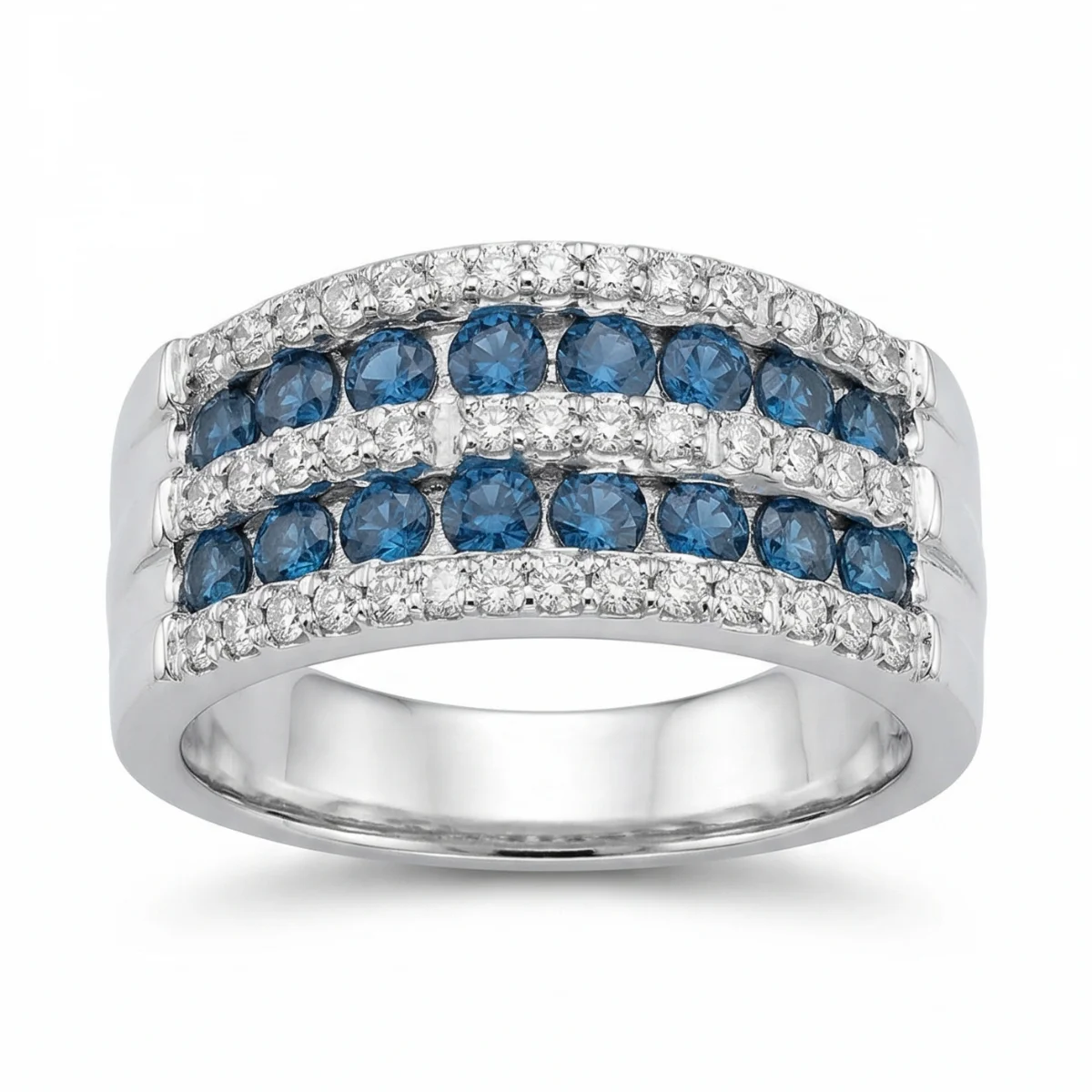White 14k Color Diamonds Ring With 0.94tw Round Shape Blue Diamond Color Enhanced and 0.38tw Round Shape Diamond