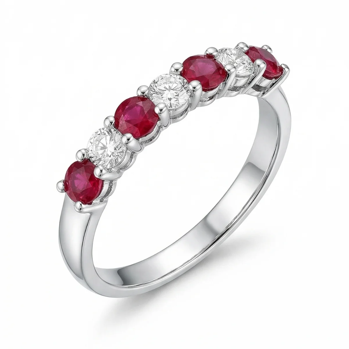 White 14k Ruby Ring With 0.25tw Round Shape Diamond and 0.47tw Round Shape Ruby
