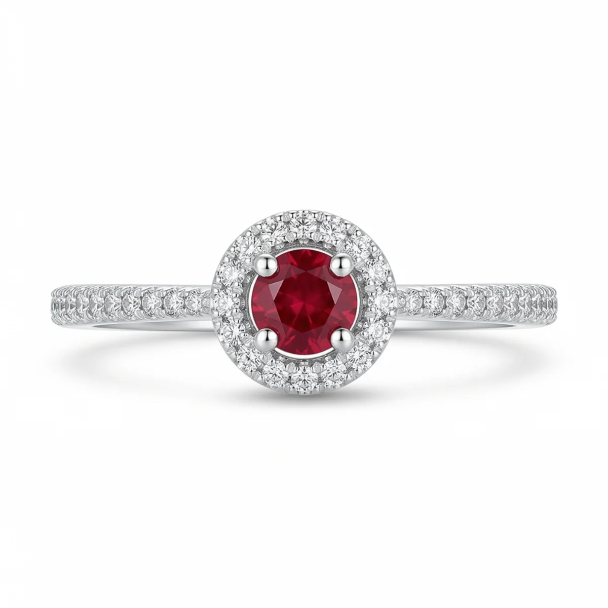 White 14k Ruby Ring With 0.26tw Round Shape Ruby and 0.12tw Round Shape Diamond