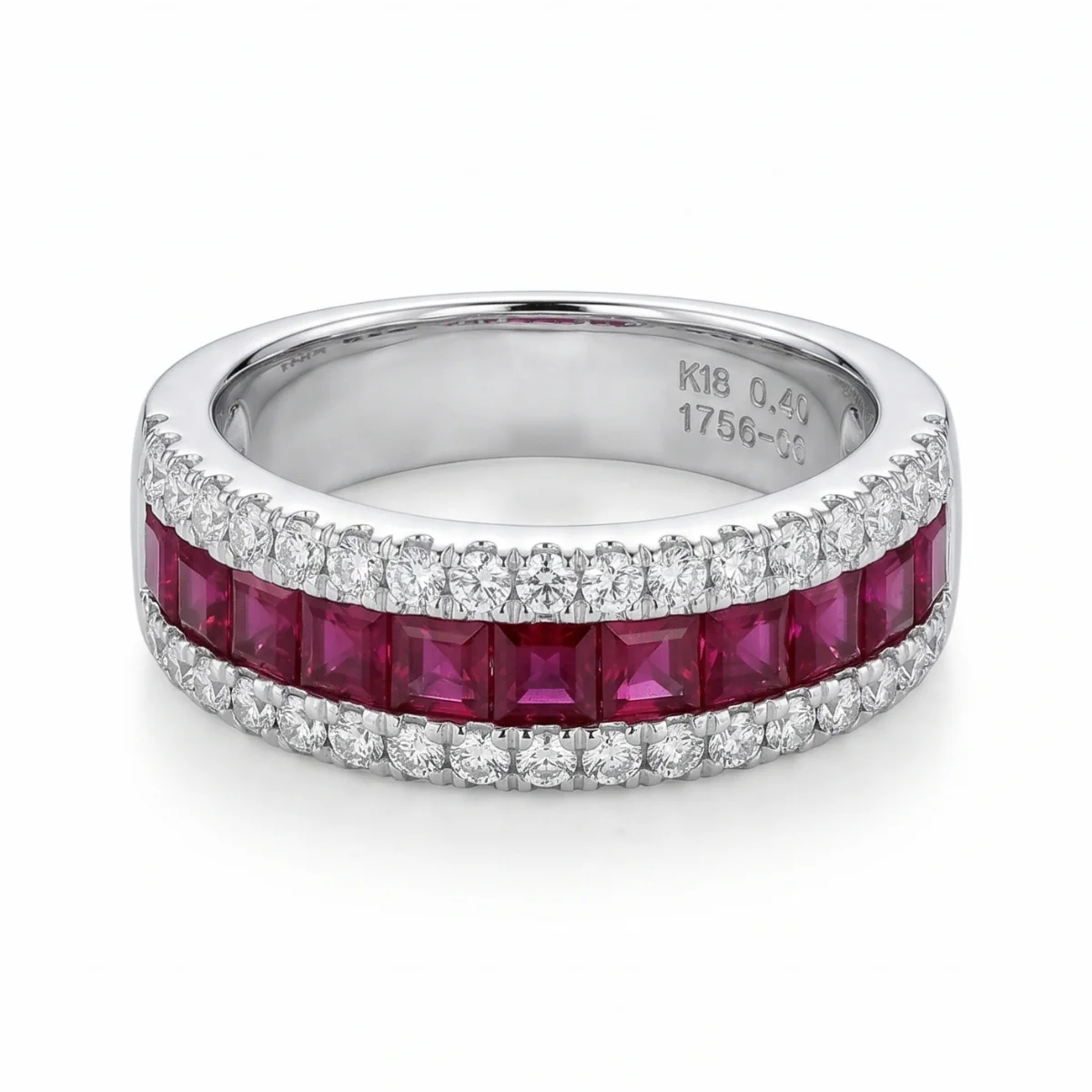 White 14k Ruby Ring With 0.61tw Round Shape Diamond and 2.11tw Princess Cut Ruby