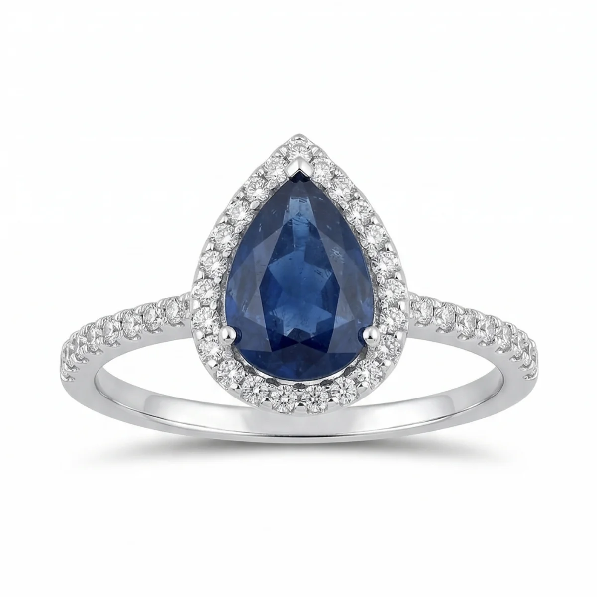 White 14k Sapphire Ring With 1.45tw Pear Shape Sapphire and 0.25tw Round Shape Diamond
