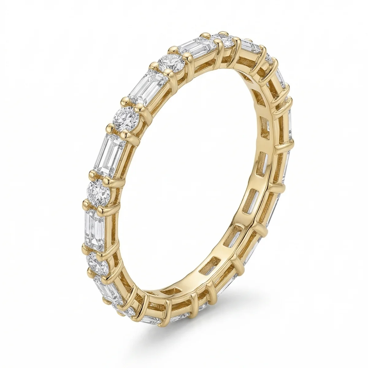 Yellow 14k Diamond Ring With 0.44tw Round Shape Diamond and 1.00tw Baguette Diamond