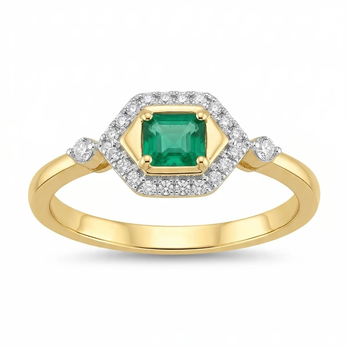 Yellow 14k Emerald Ring With 0.22tw Emerald Cut Emerald and 0.14tw Round Shape Diamond