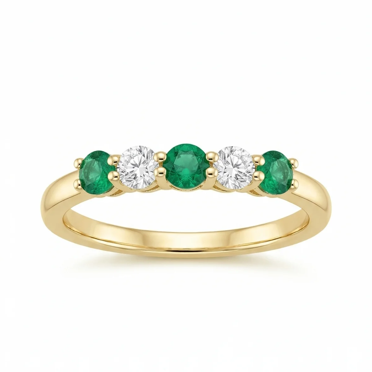 Yellow 14k Emerald Ring With 0.23tw Round Shape Emerald and 0.13tw Round Shape Diamond