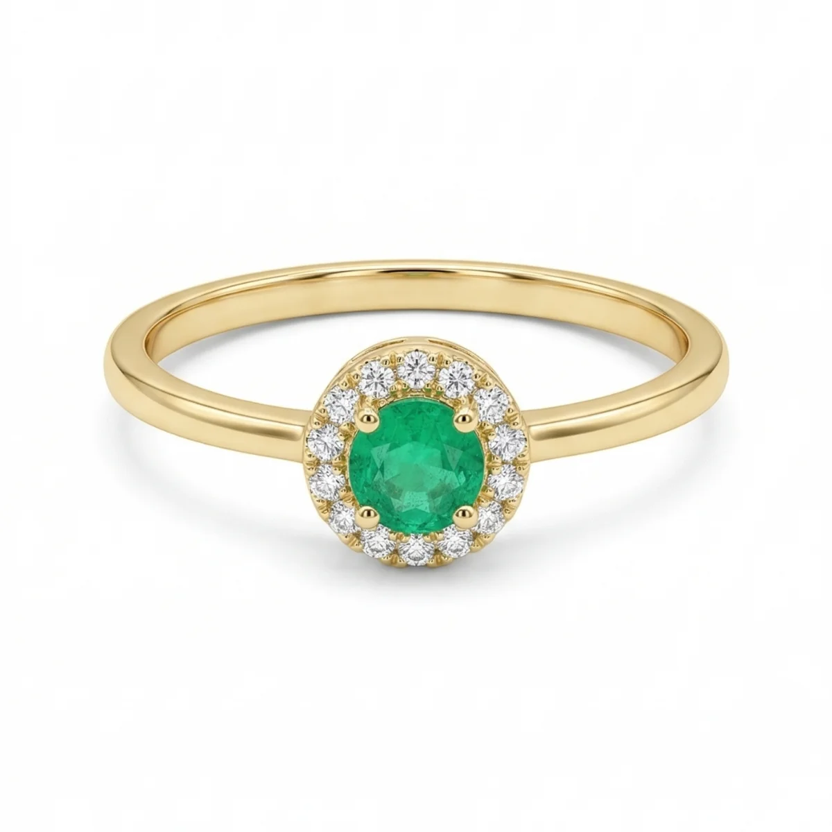 Yellow 14k Emerald Ring With 0.30tw Round Shape Emerald and 0.07tw Round Shape Diamond