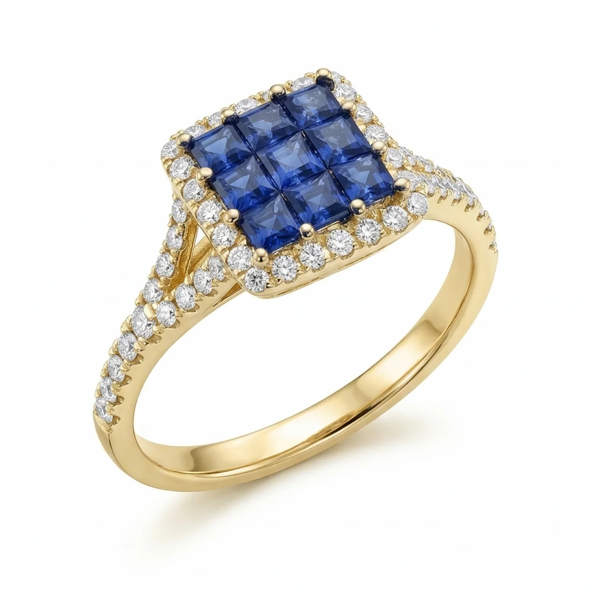 Yellow 14k Sapphire Ring With 0.84tw Princess Cut Sapphire and 0.34tw Round Shape Diamond